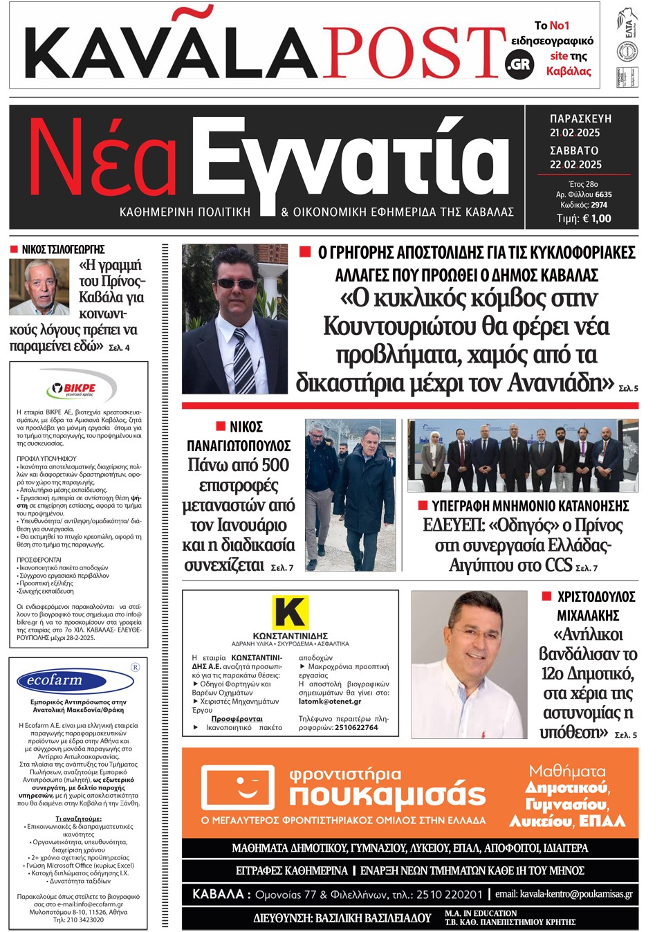ΝΕΑ ΕΓΝΑΤΙΑ - 21 Φεβρουαρίου 2025