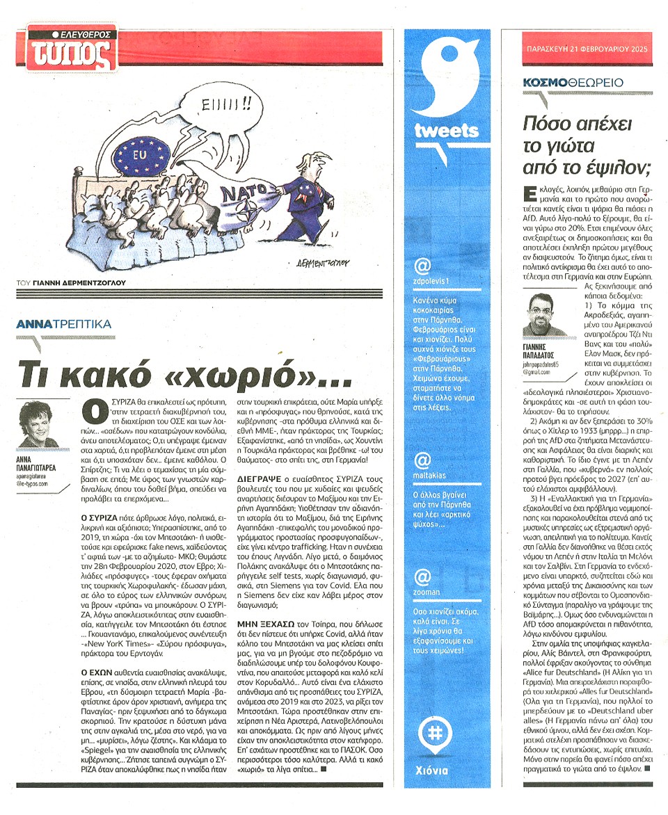 ΕΛΕΥΘΕΡΟΣ ΤΥΠΟΣ - 21 Φεβρουαρίου 2025