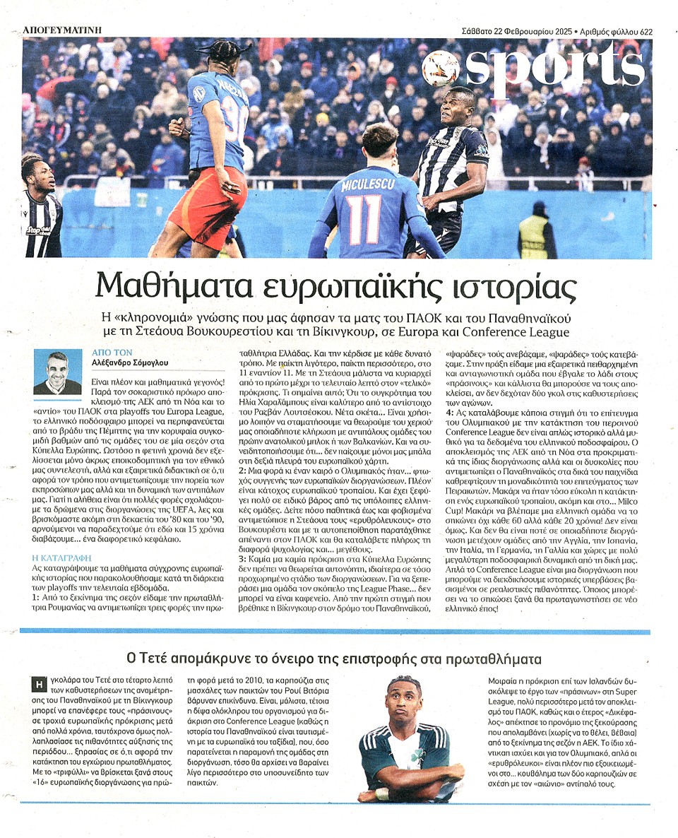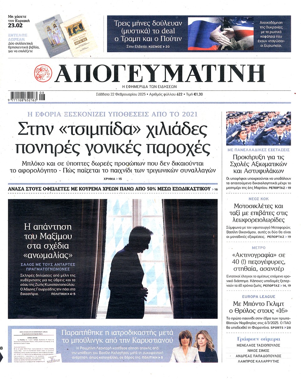 ΑΠΟΓΕΥΜΑΤΙΝΗ - 22 Φεβρουαρίου 2025