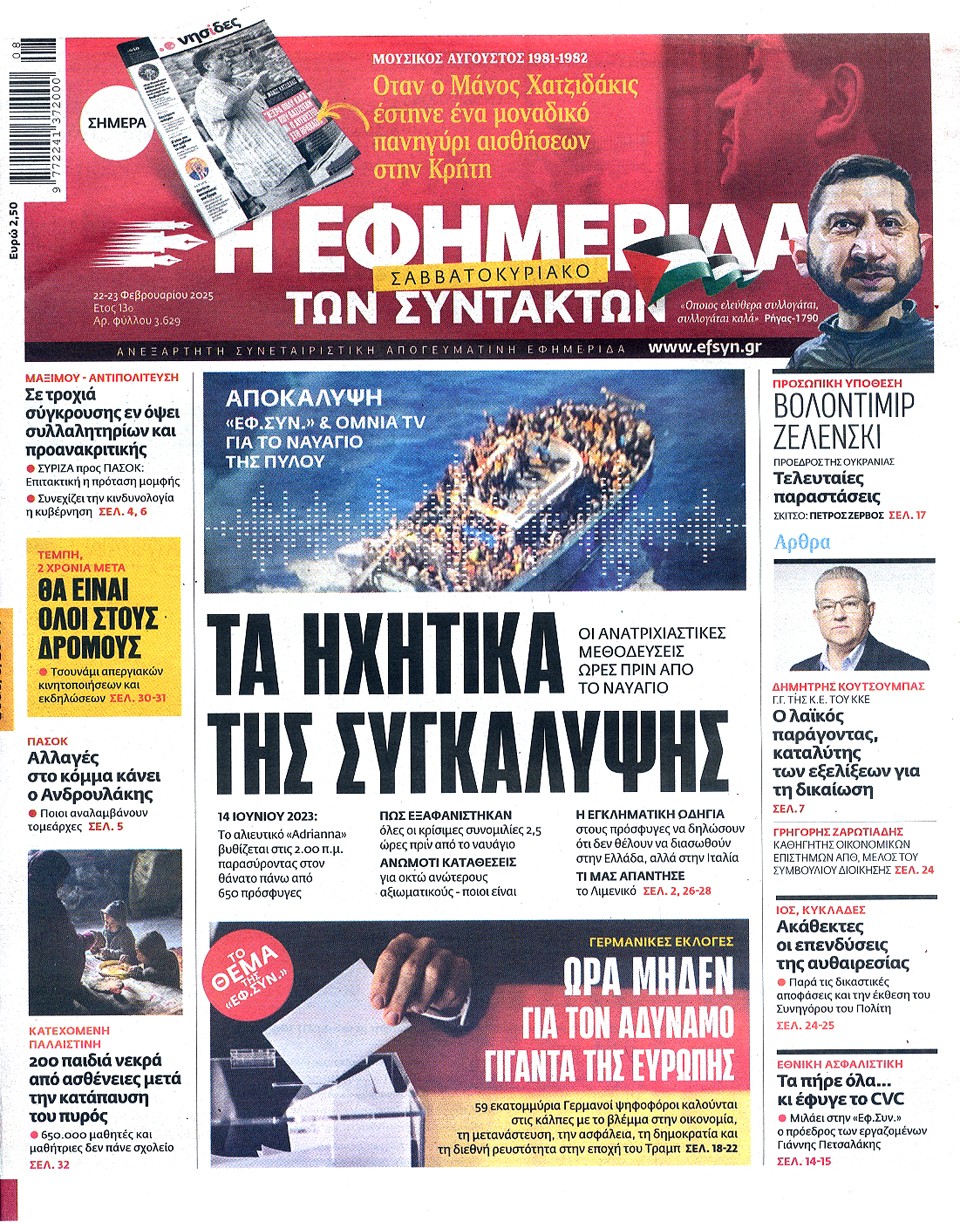 Η ΕΦΗΜΕΡΙΔΑ ΤΩΝ ΣΥΝΤΑΚΤΩΝ - 22 Φεβρουαρίου 2025