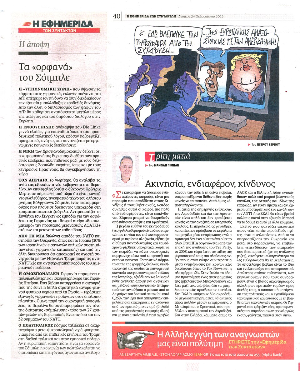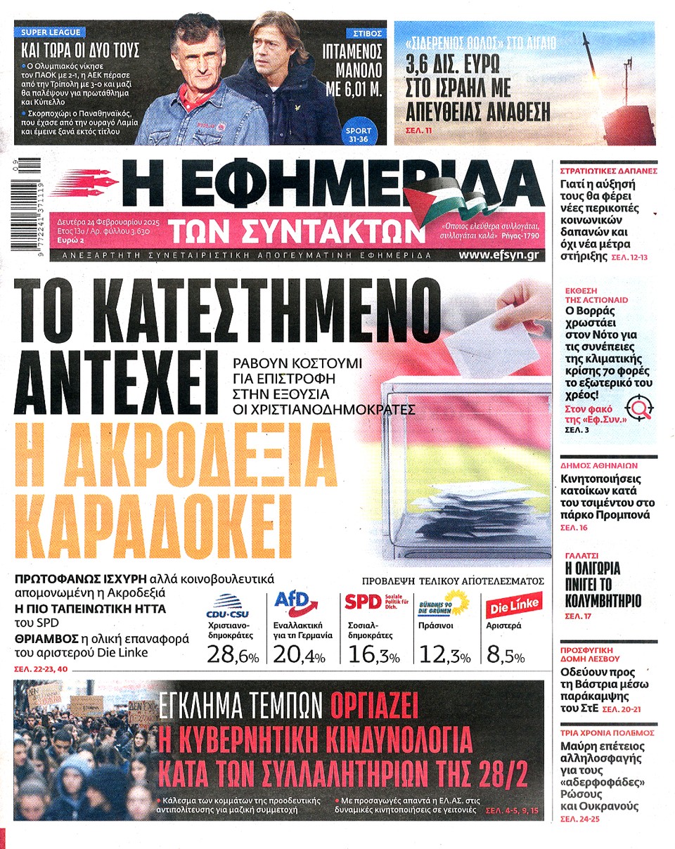 Η ΕΦΗΜΕΡΙΔΑ ΤΩΝ ΣΥΝΤΑΚΤΩΝ - 24 Φεβρουαρίου 2025