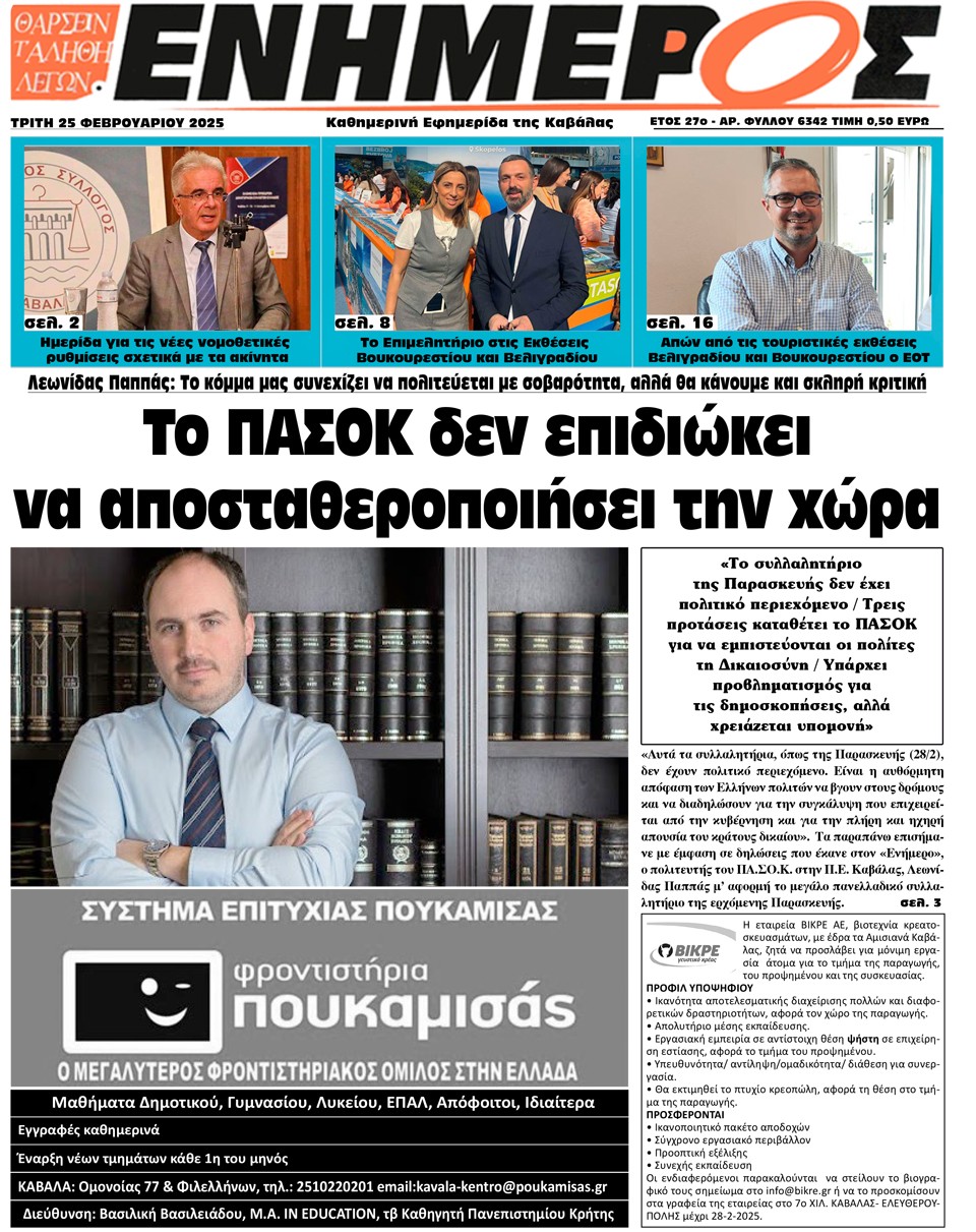 ΕΝΗΜΕΡΟΣ - 25 Φεβρουαρίου 2025