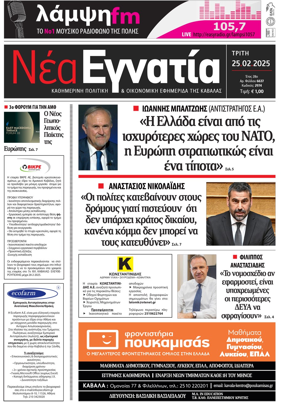 ΝΕΑ ΕΓΝΑΤΙΑ - 25 Φεβρουαρίου 2025