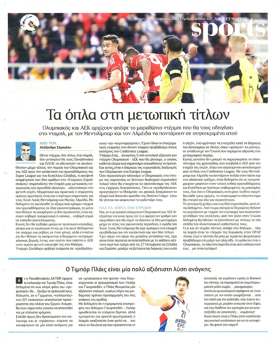 ΑΠΟΓΕΥΜΑΤΙΝΗ - 26 Φεβρουαρίου 2025