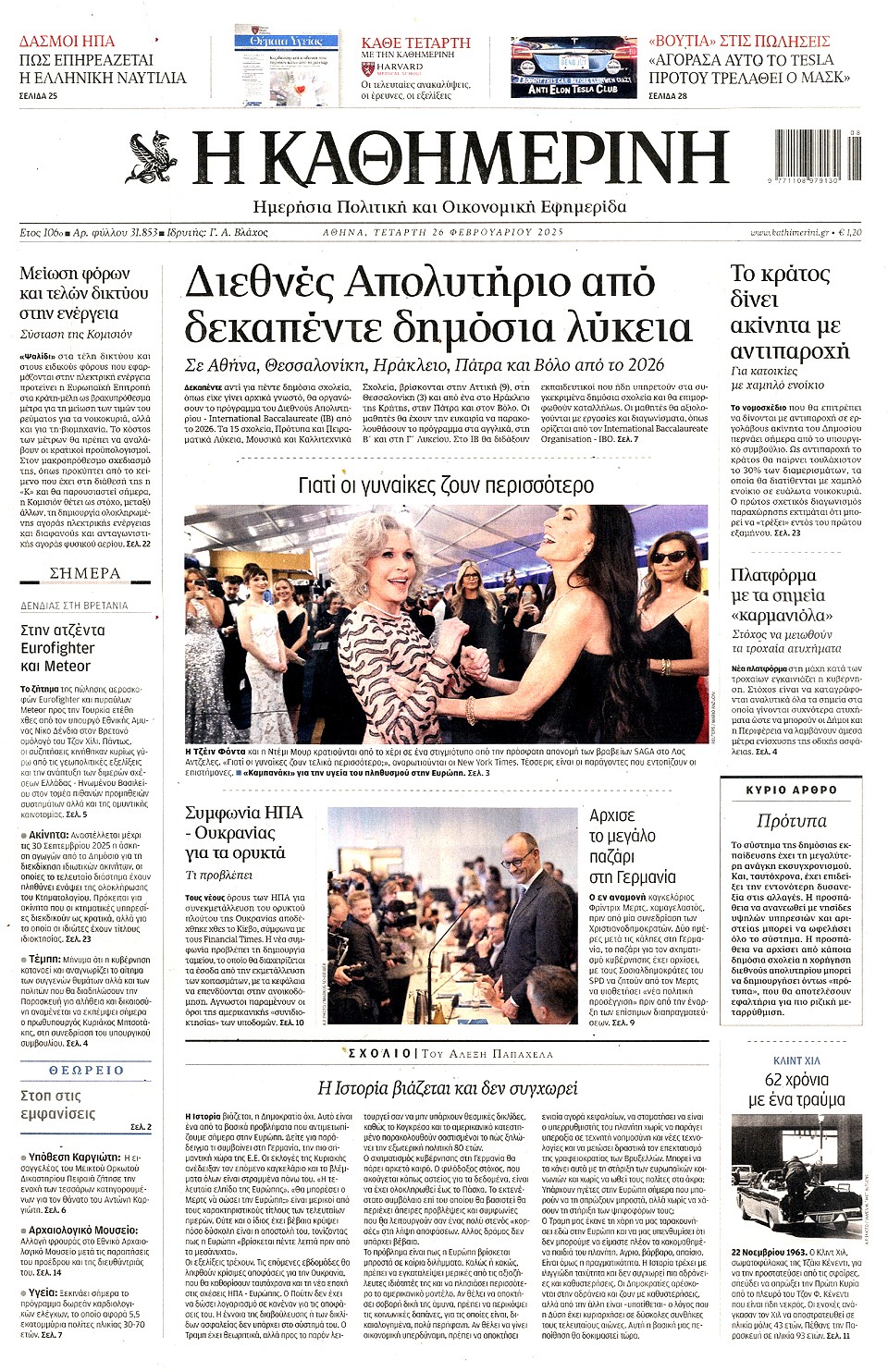 ΚΑΘΗΜΕΡΙΝΗ - 26 Φεβρουαρίου 2025