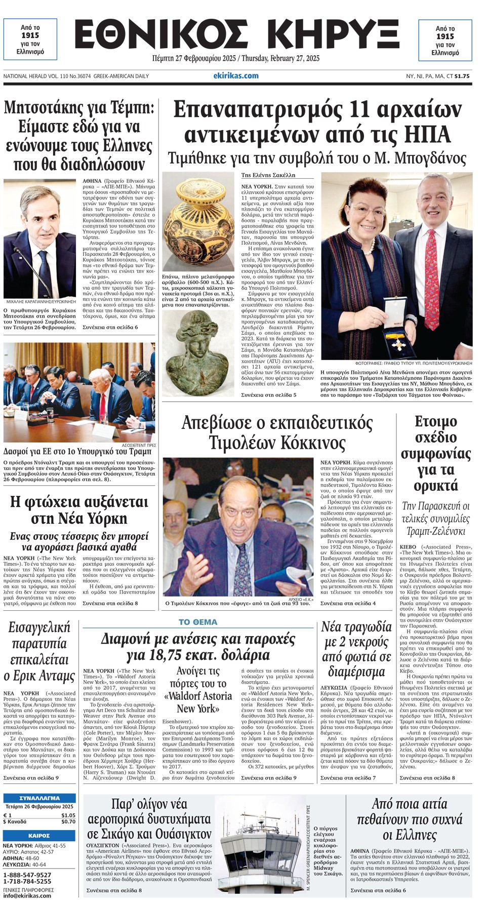 ΕΘΝΙΚΟΣ ΚΗΡΥΞ - 27 Φεβρουαρίου 2025