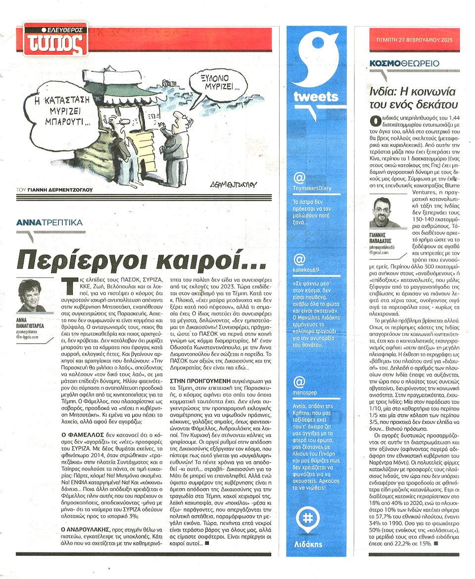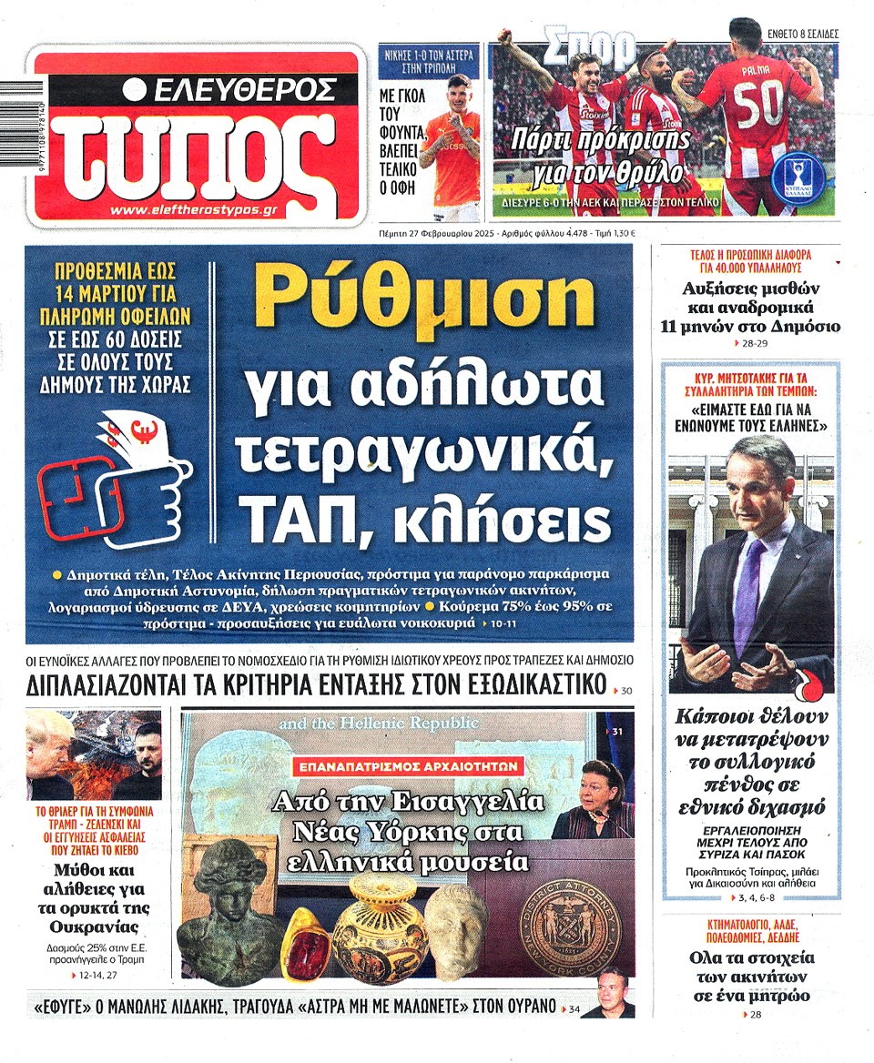 ΕΛΕΥΘΕΡΟΣ ΤΥΠΟΣ - 27 Φεβρουαρίου 2025