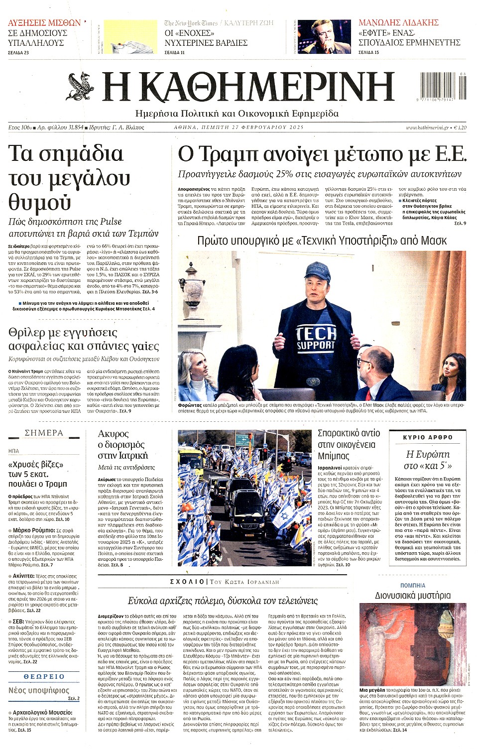 ΚΑΘΗΜΕΡΙΝΗ - 27 Φεβρουαρίου 2025