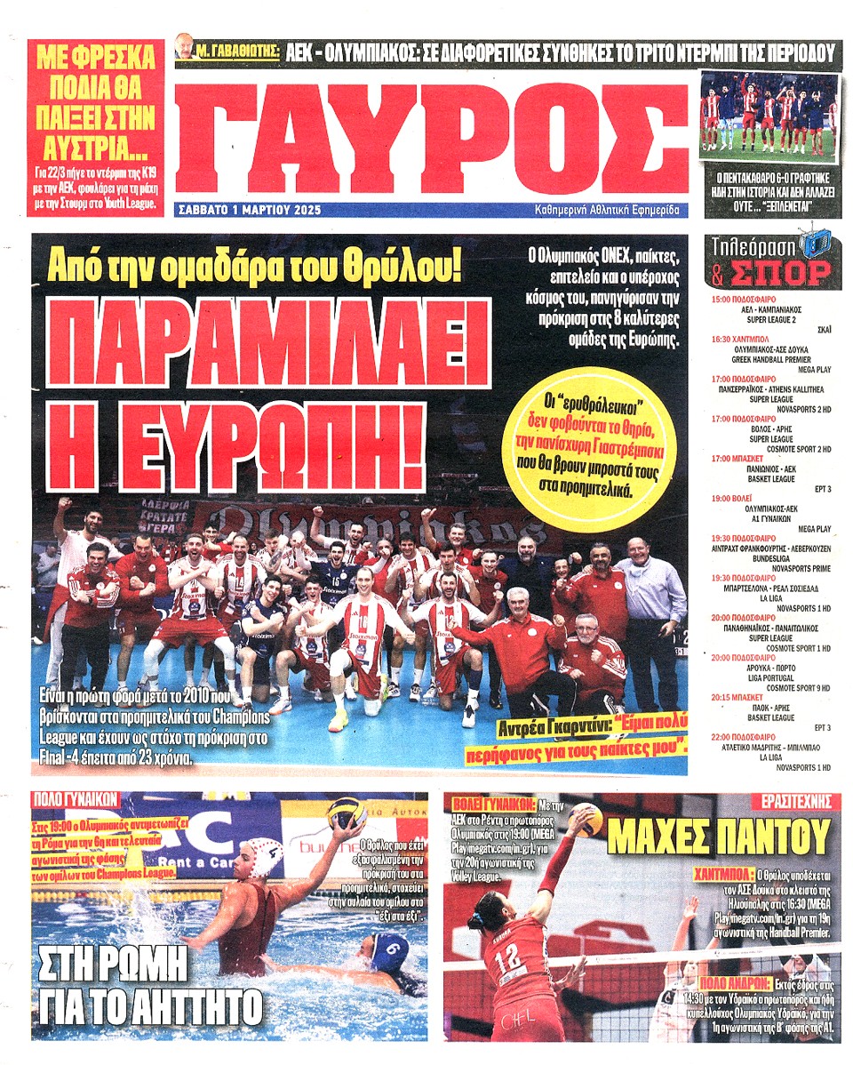 ΠΡΩΤΑΘΛΗΤΗΣ - 01 Μαρτίου 2025