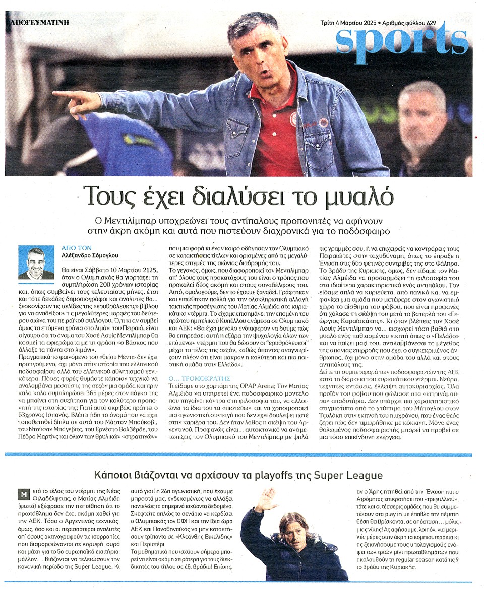ΑΠΟΓΕΥΜΑΤΙΝΗ - 04 Μαρτίου 2025