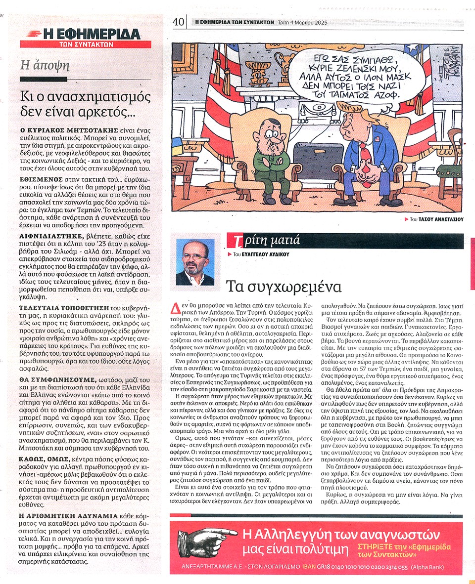 Η ΕΦΗΜΕΡΙΔΑ ΤΩΝ ΣΥΝΤΑΚΤΩΝ - 04 Μαρτίου 2025