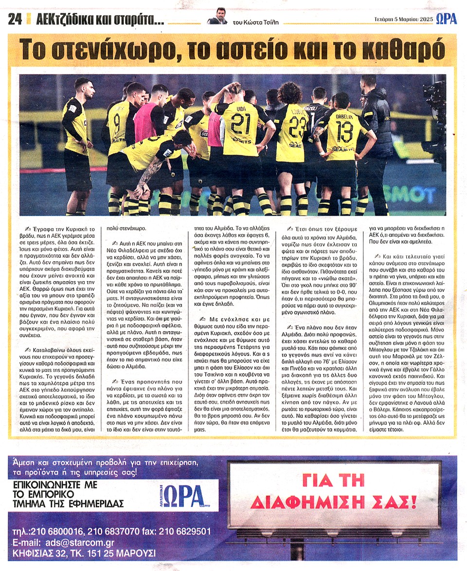 ΑΘΛΗΤΙΚΗ ΩΡΑ ΤΩΝ ΣΠΟΡ - 05 Μαρτίου 2025