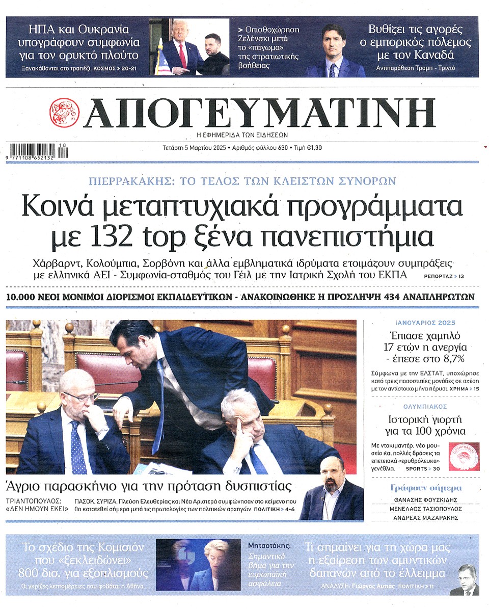 ΑΠΟΓΕΥΜΑΤΙΝΗ - 05 Μαρτίου 2025