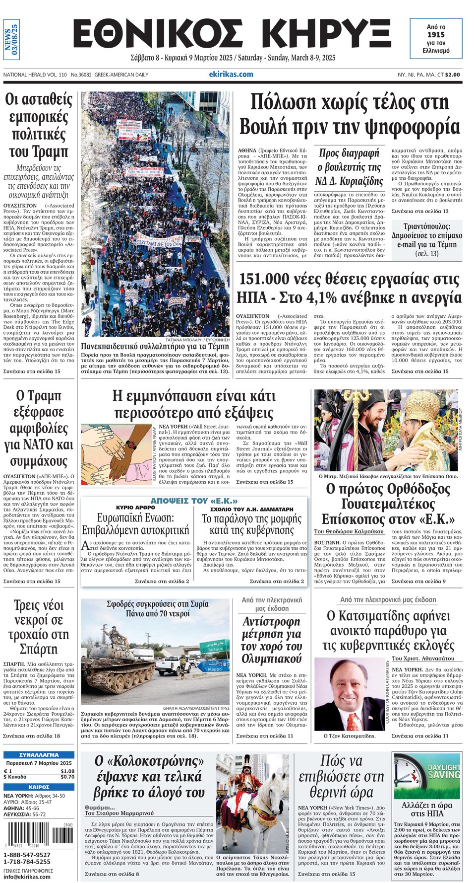 ΕΘΝΙΚΟΣ ΚΗΡΥΞ - 08 Μαρτίου 2025