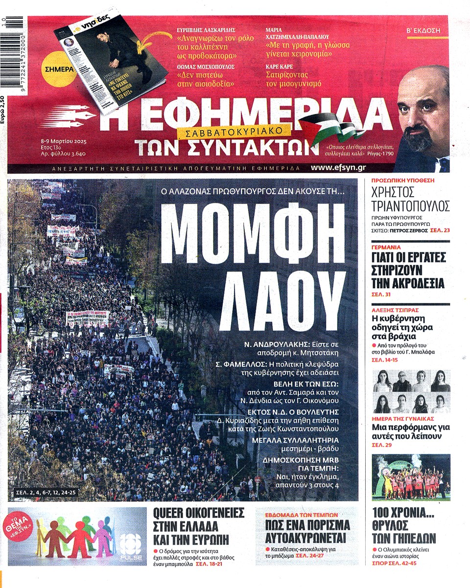 Η ΕΦΗΜΕΡΙΔΑ ΤΩΝ ΣΥΝΤΑΚΤΩΝ - 08 Μαρτίου 2025