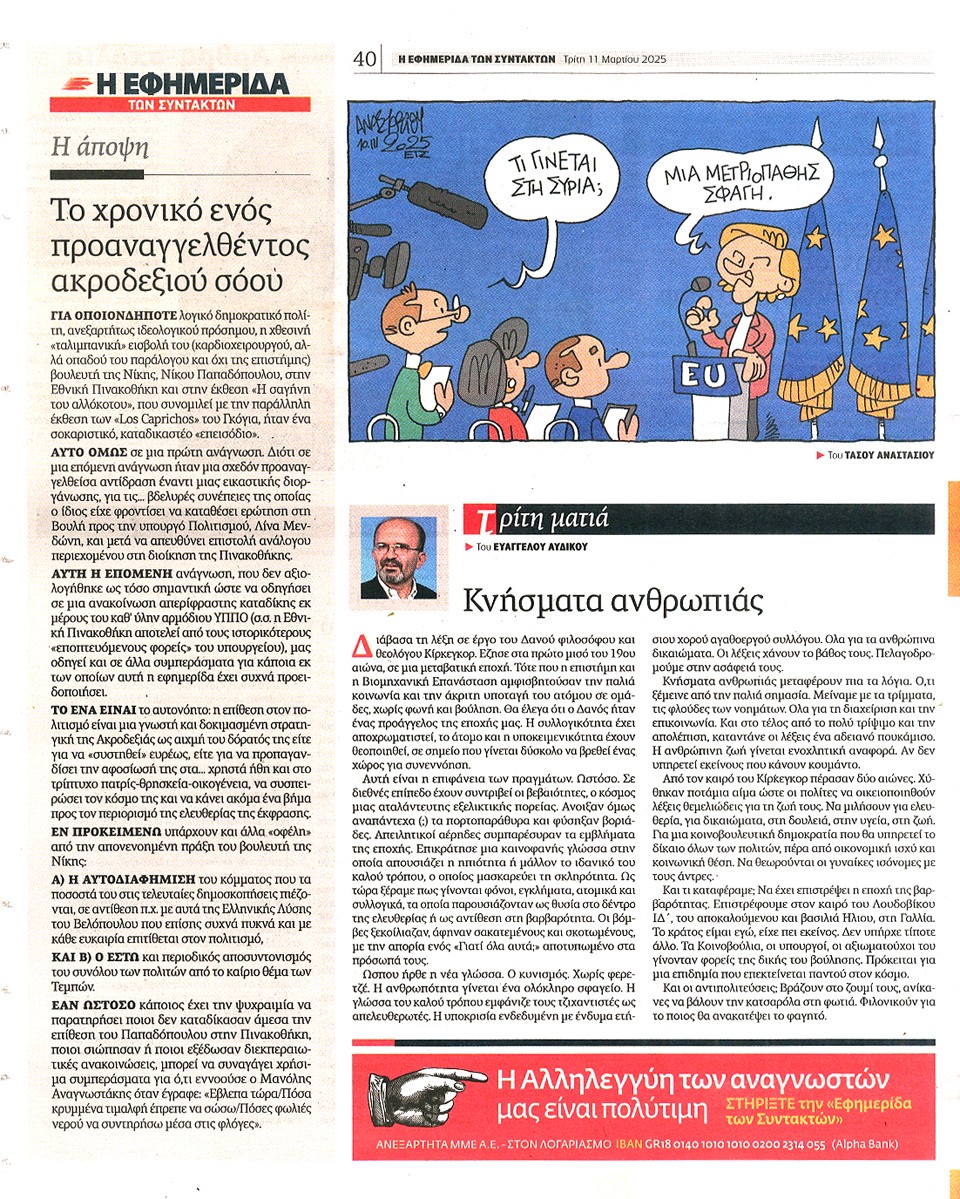 Η ΕΦΗΜΕΡΙΔΑ ΤΩΝ ΣΥΝΤΑΚΤΩΝ - 11 Μαρτίου 2025