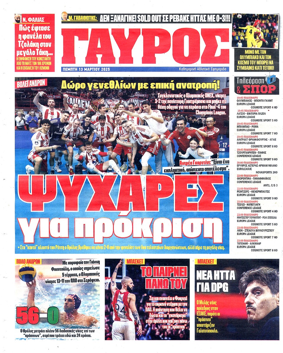 ΠΡΩΤΑΘΛΗΤΗΣ - 13 Μαρτίου 2025
