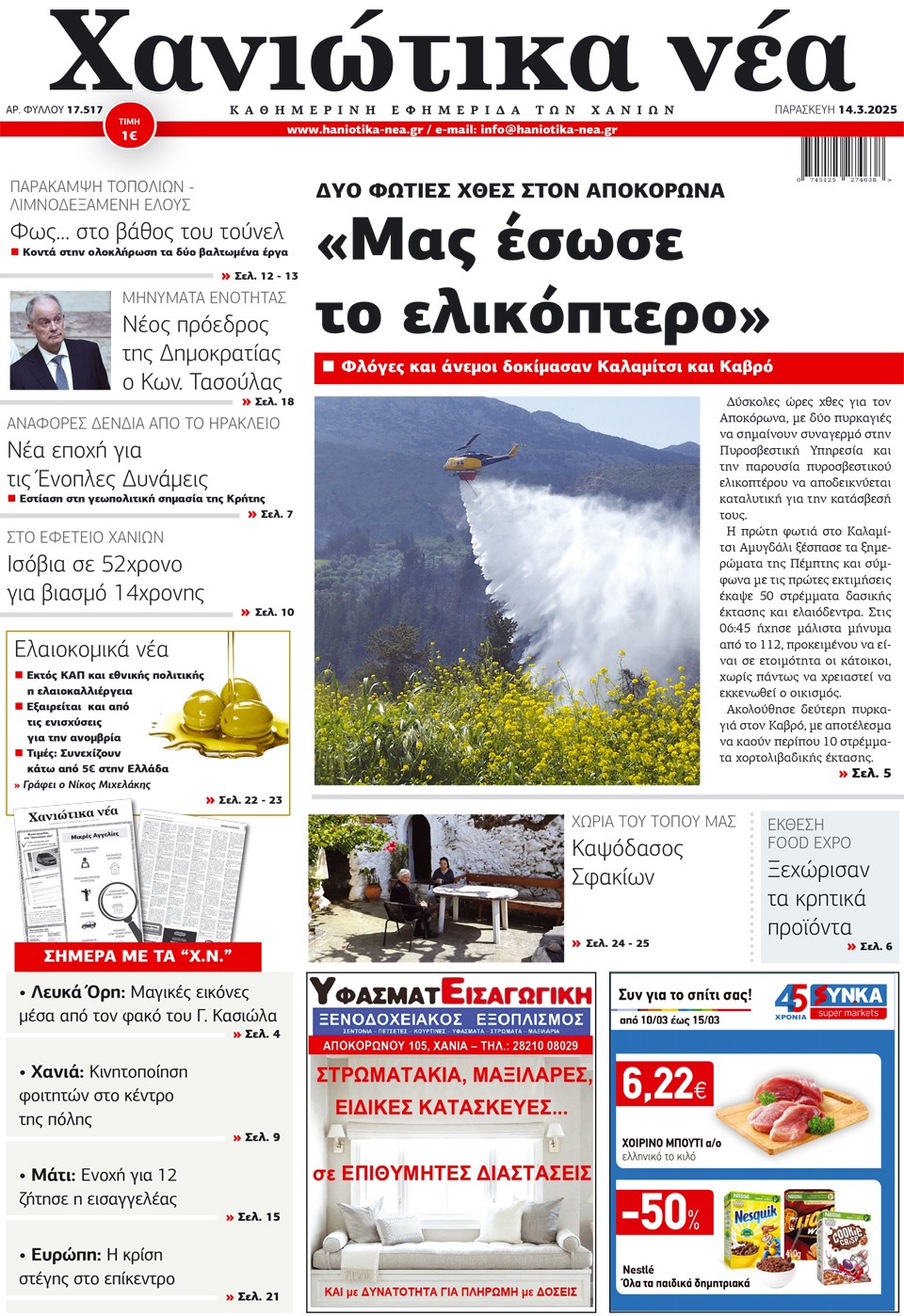 ΧΑΝΙΩΤΙΚΑ ΝΕΑ - 14 Μαρτίου 2025