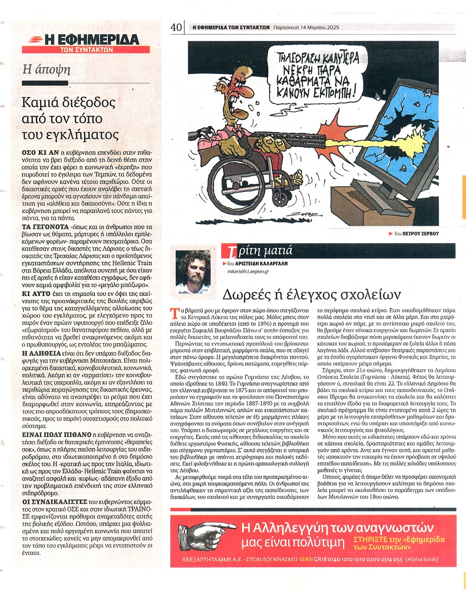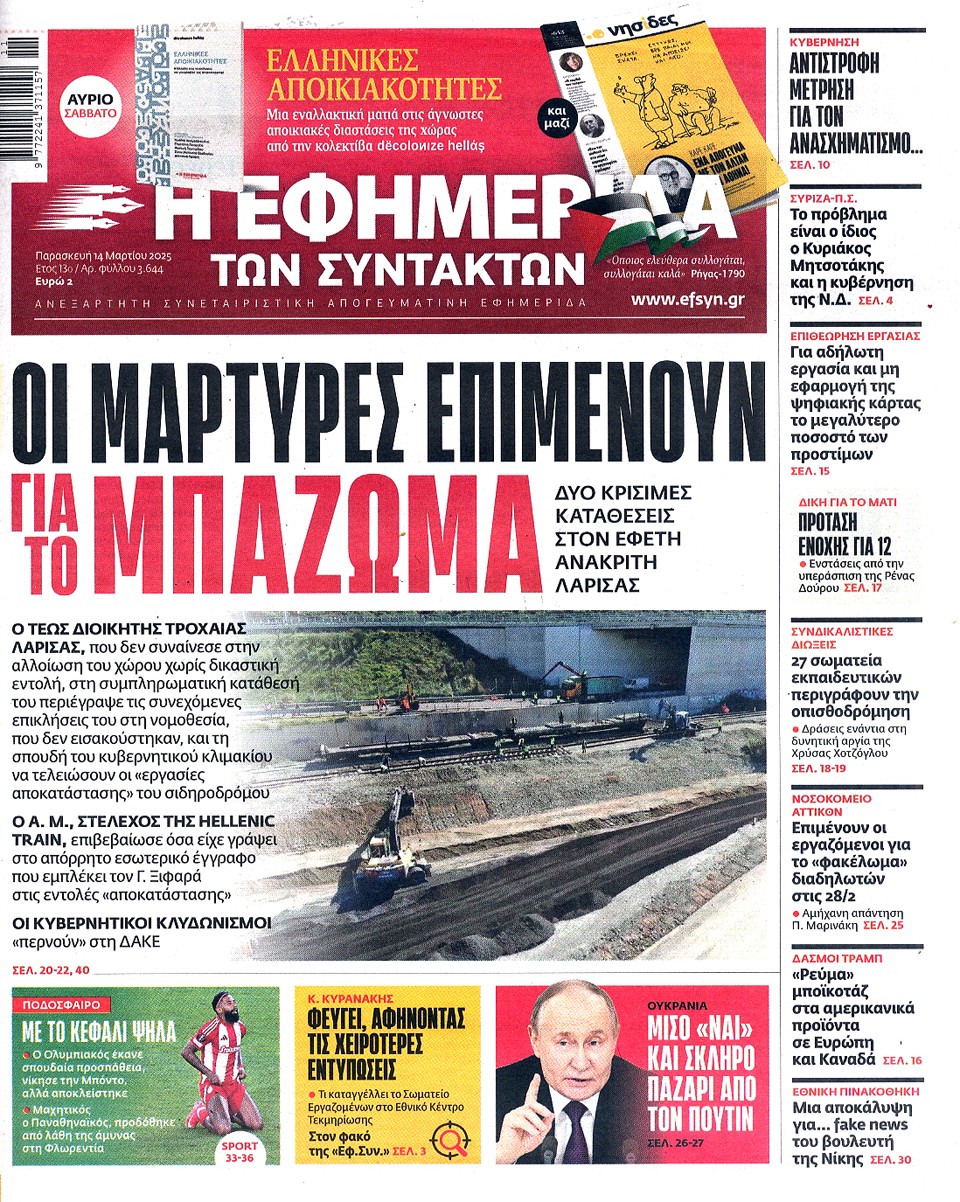 Η ΕΦΗΜΕΡΙΔΑ ΤΩΝ ΣΥΝΤΑΚΤΩΝ - 14 Μαρτίου 2025