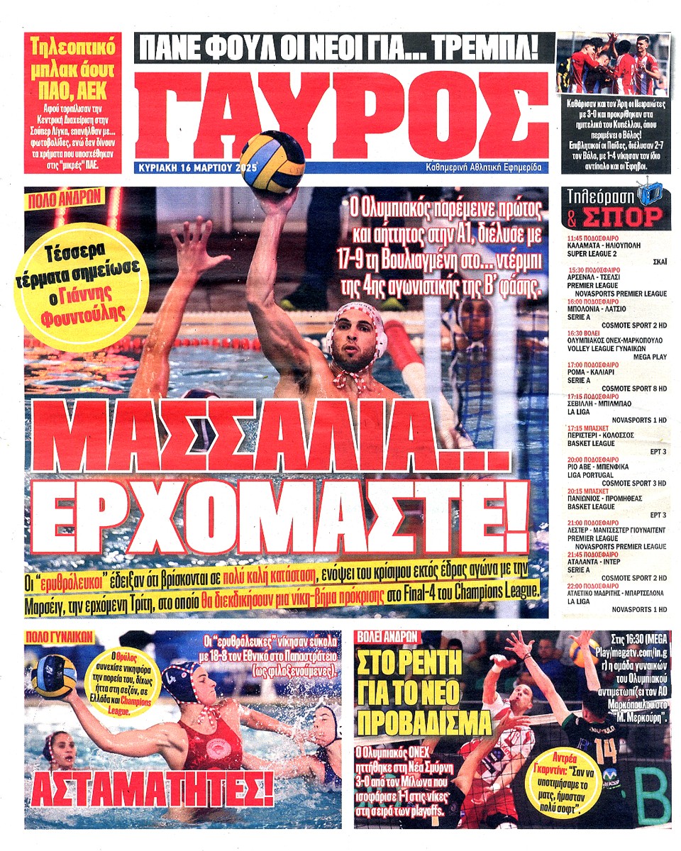 ΠΡΩΤΑΘΛΗΤΗΣ - 16 Μαρτίου 2025