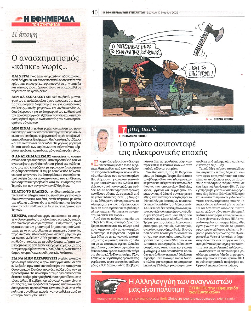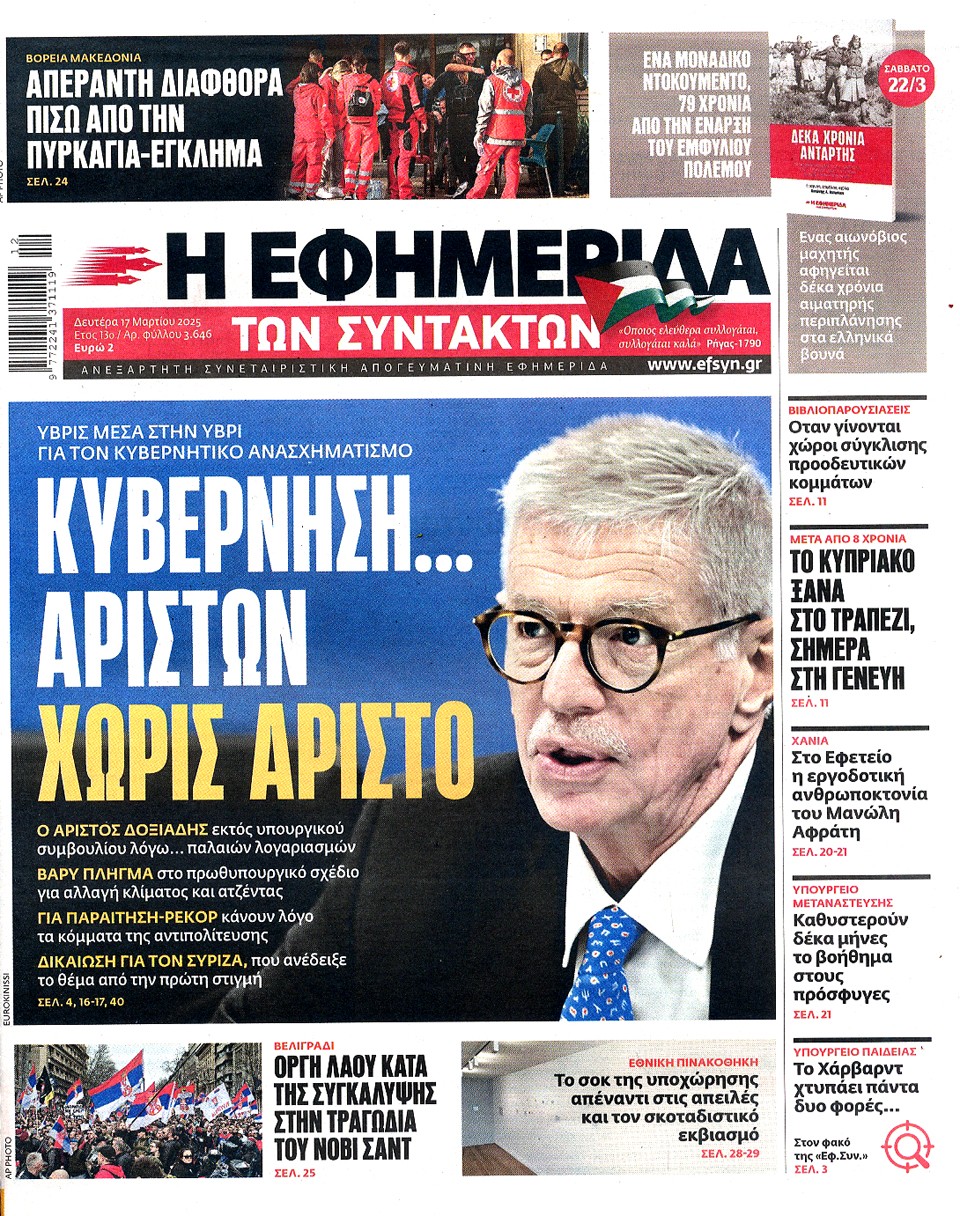 Η ΕΦΗΜΕΡΙΔΑ ΤΩΝ ΣΥΝΤΑΚΤΩΝ - 17 Μαρτίου 2025