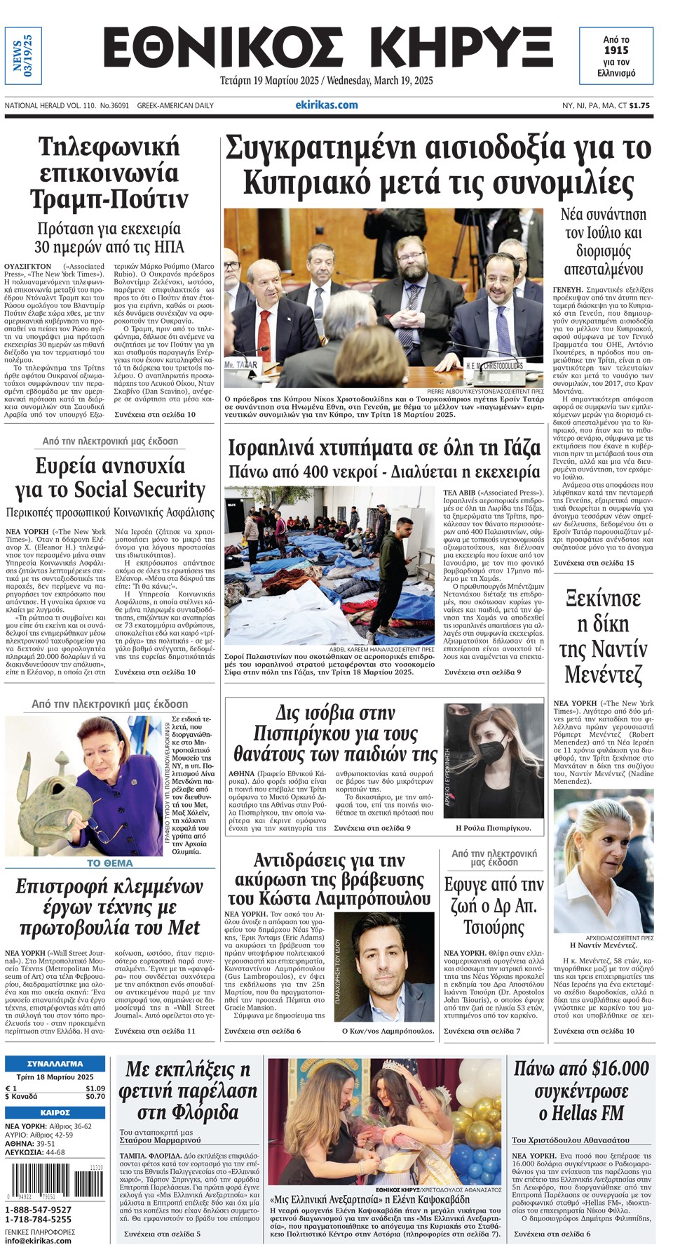 ΕΘΝΙΚΟΣ ΚΗΡΥΞ - 19 Μαρτίου 2025