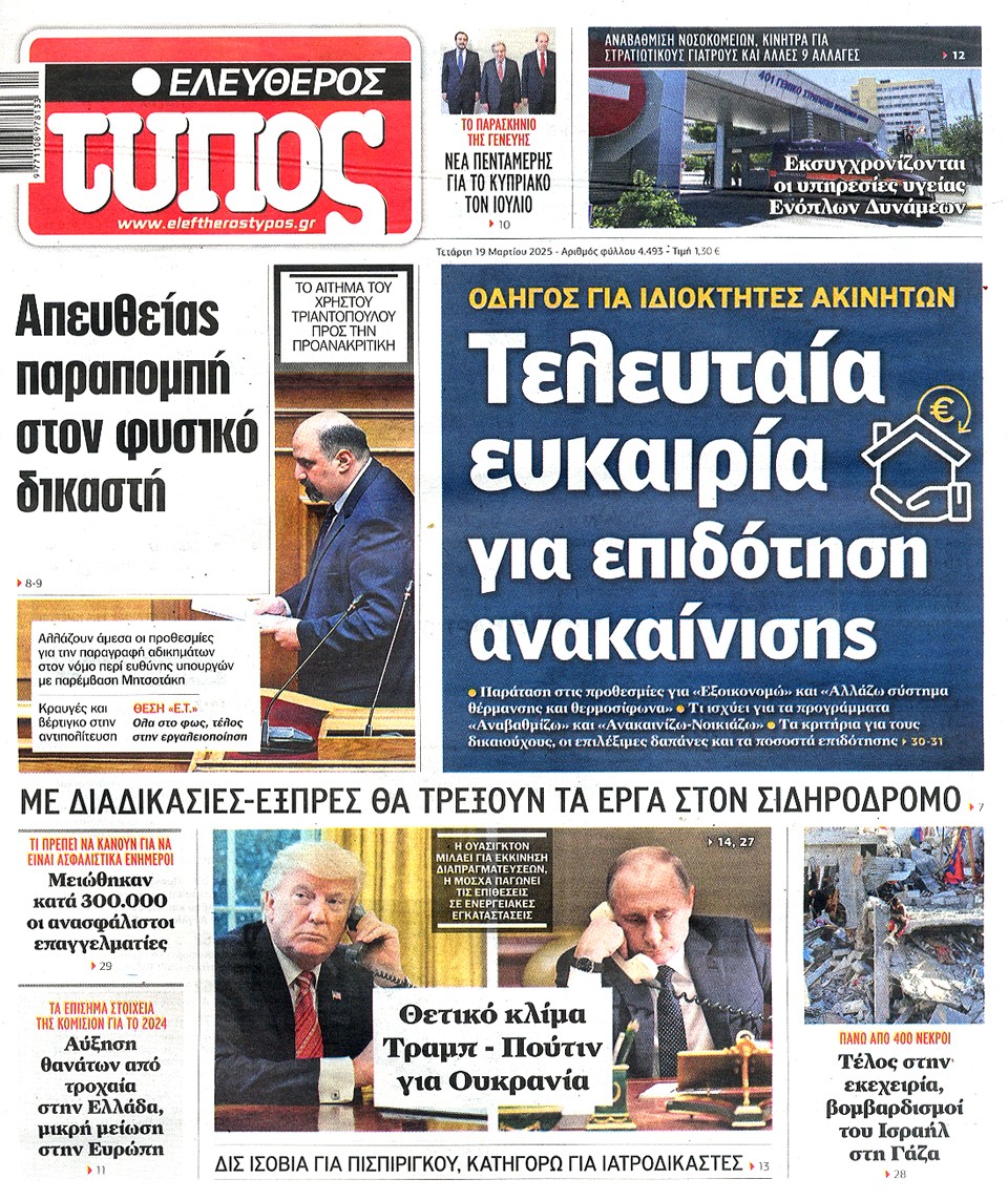 ΕΛΕΥΘΕΡΟΣ ΤΥΠΟΣ - 19 Μαρτίου 2025