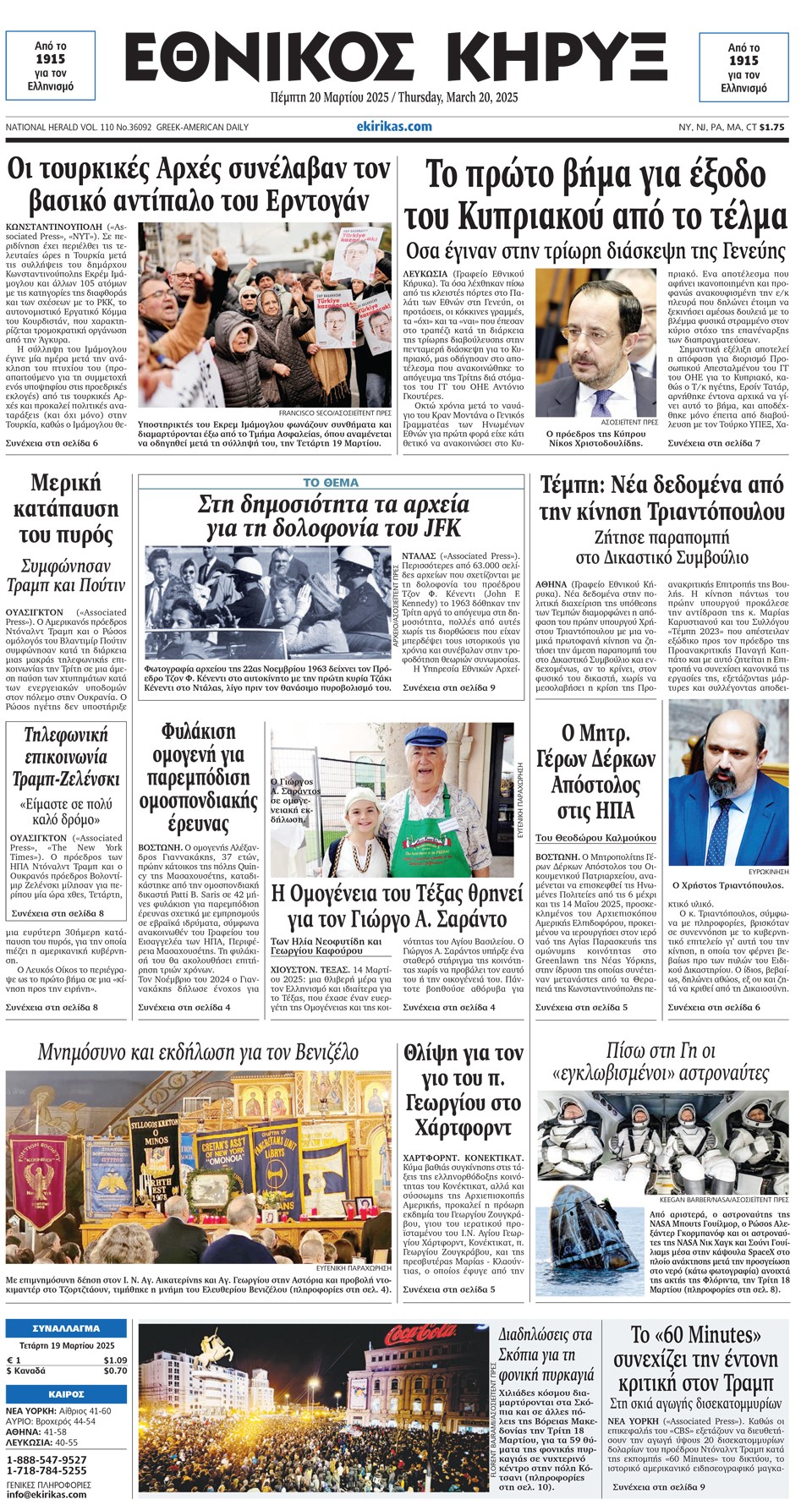 ΕΘΝΙΚΟΣ ΚΗΡΥΞ - 20 Μαρτίου 2025