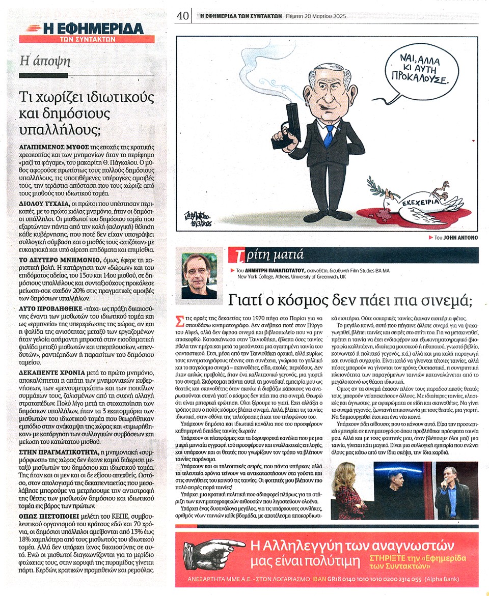 Η ΕΦΗΜΕΡΙΔΑ ΤΩΝ ΣΥΝΤΑΚΤΩΝ - 20 Μαρτίου 2025