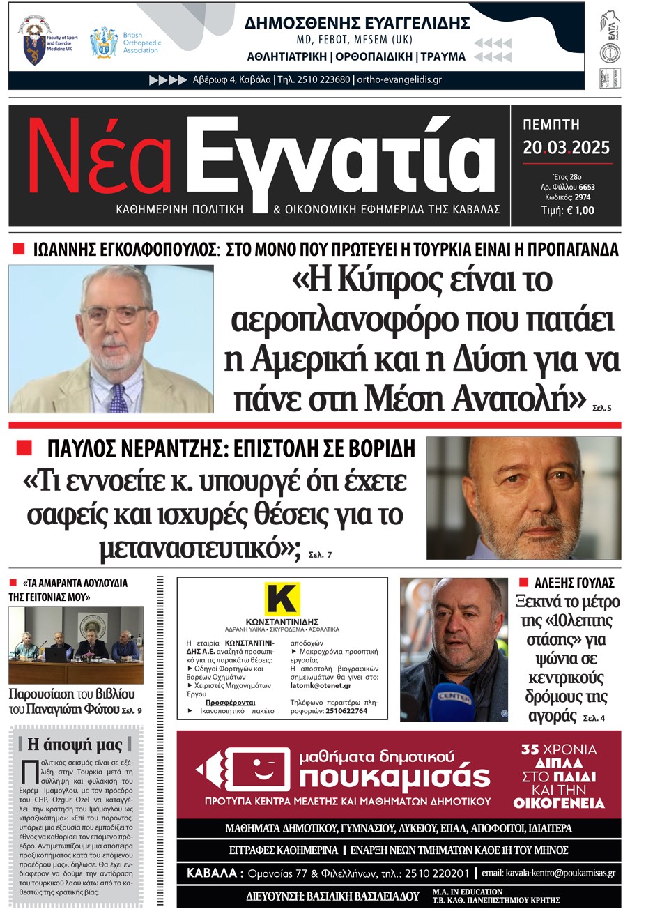 ΝΕΑ ΕΓΝΑΤΙΑ - 20 Μαρτίου 2025