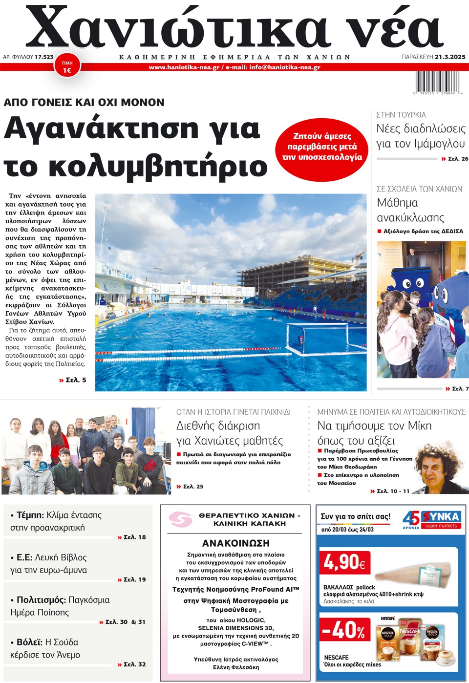 ΧΑΝΙΩΤΙΚΑ ΝΕΑ - 21 Μαρτίου 2025