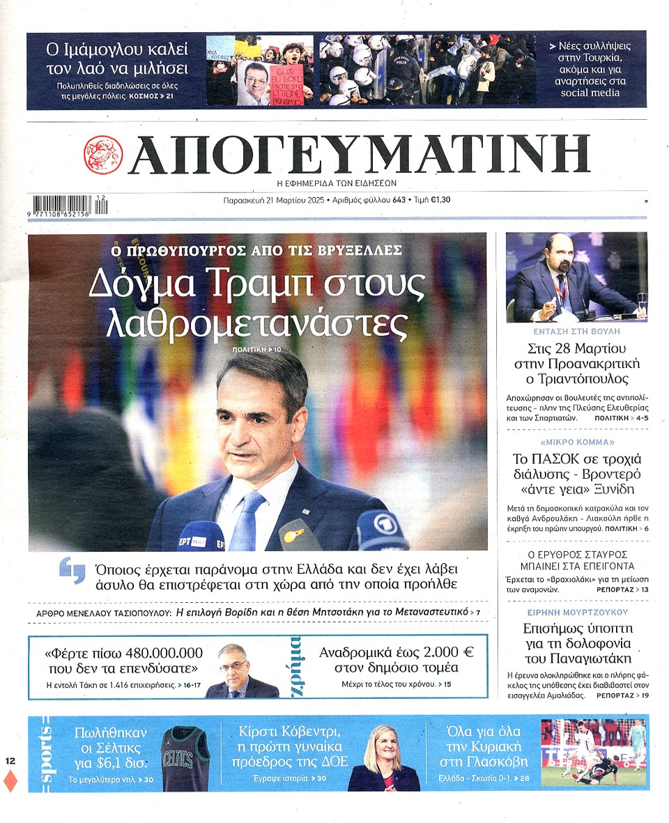 ΑΠΟΓΕΥΜΑΤΙΝΗ - 21 Μαρτίου 2025