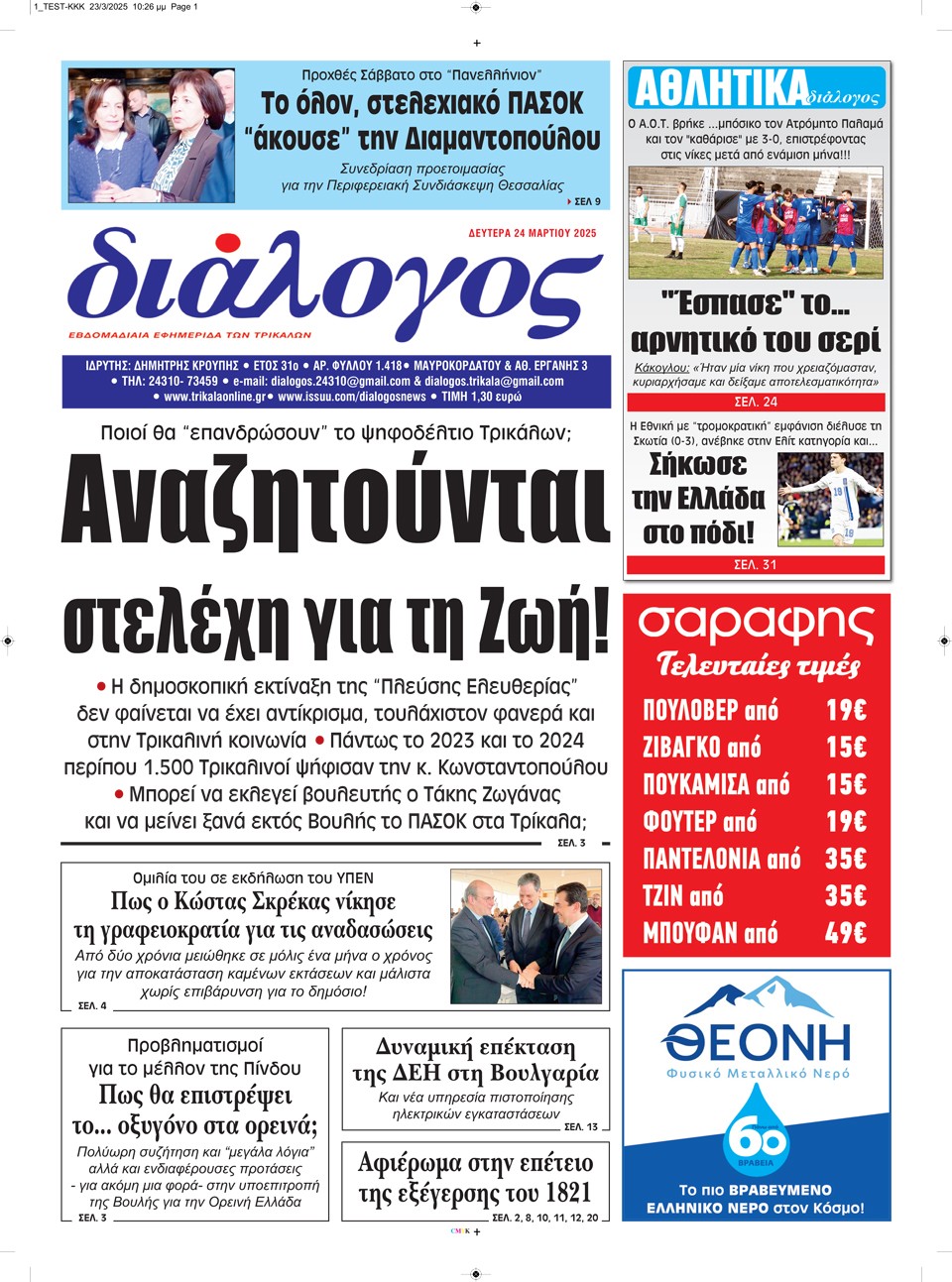 ΔΙΑΛΟΓΟΣ (ΤΡΙΚΑΛΑ) - 24 Μαρτίου 2025