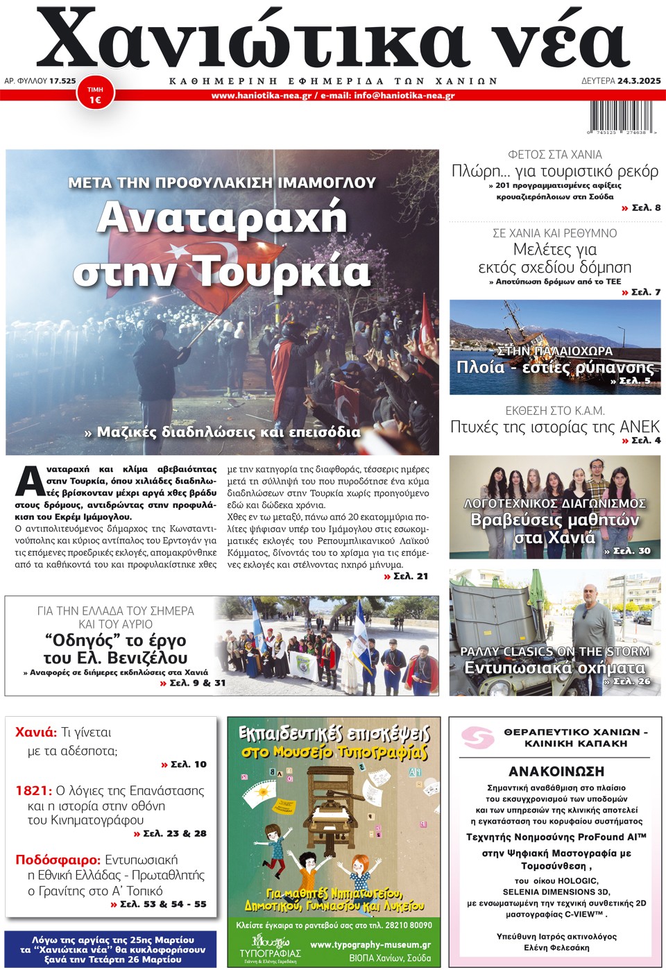 ΧΑΝΙΩΤΙΚΑ ΝΕΑ - 24 Μαρτίου 2025