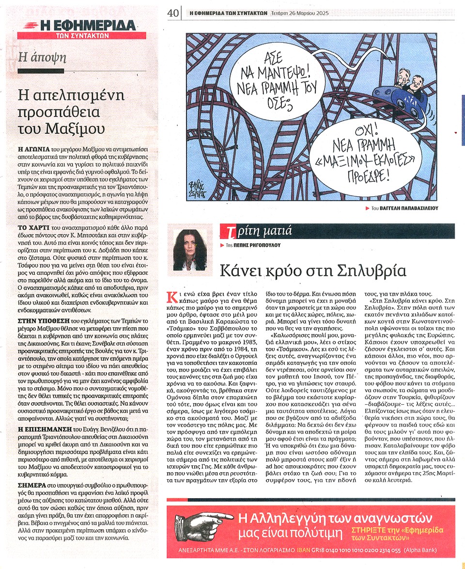 Η ΕΦΗΜΕΡΙΔΑ ΤΩΝ ΣΥΝΤΑΚΤΩΝ - 26 Μαρτίου 2025