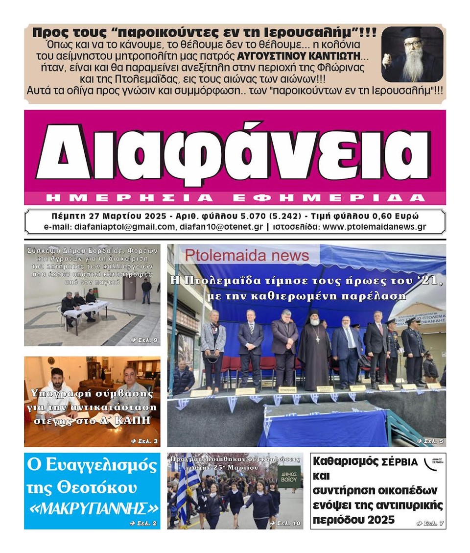 ΔΙΑΦΑΝΕΙΑ - 27 Μαρτίου 2025