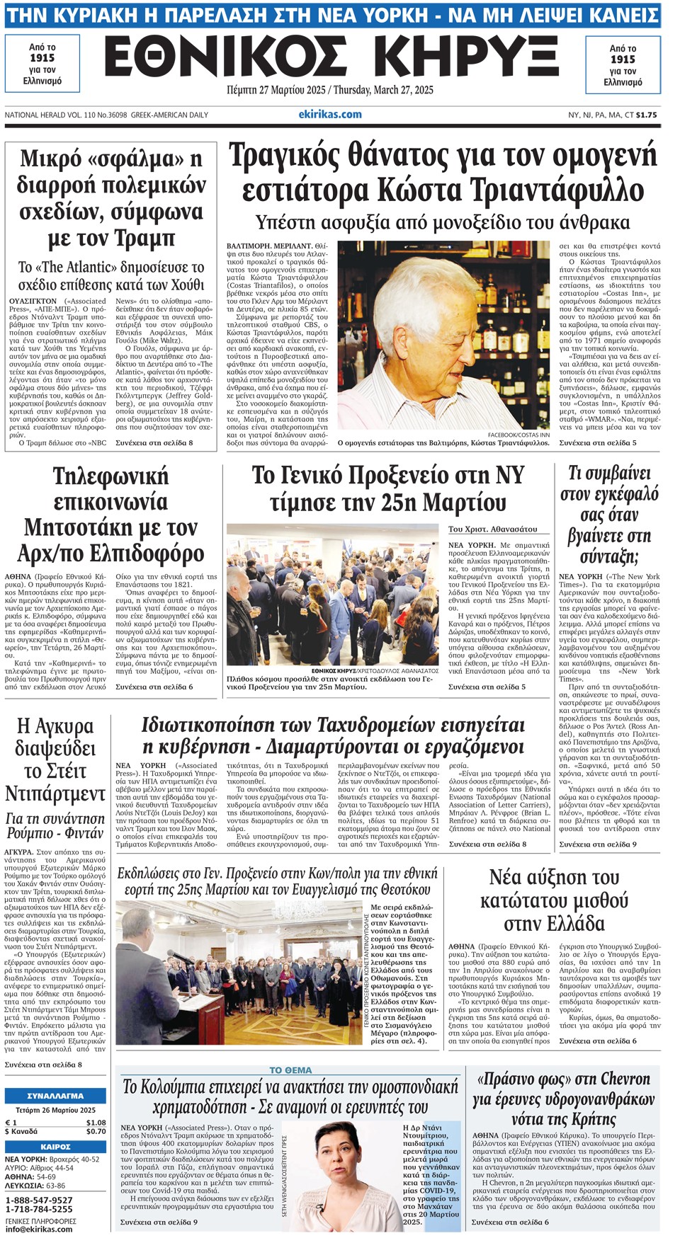 ΕΘΝΙΚΟΣ ΚΗΡΥΞ - 27 Μαρτίου 2025