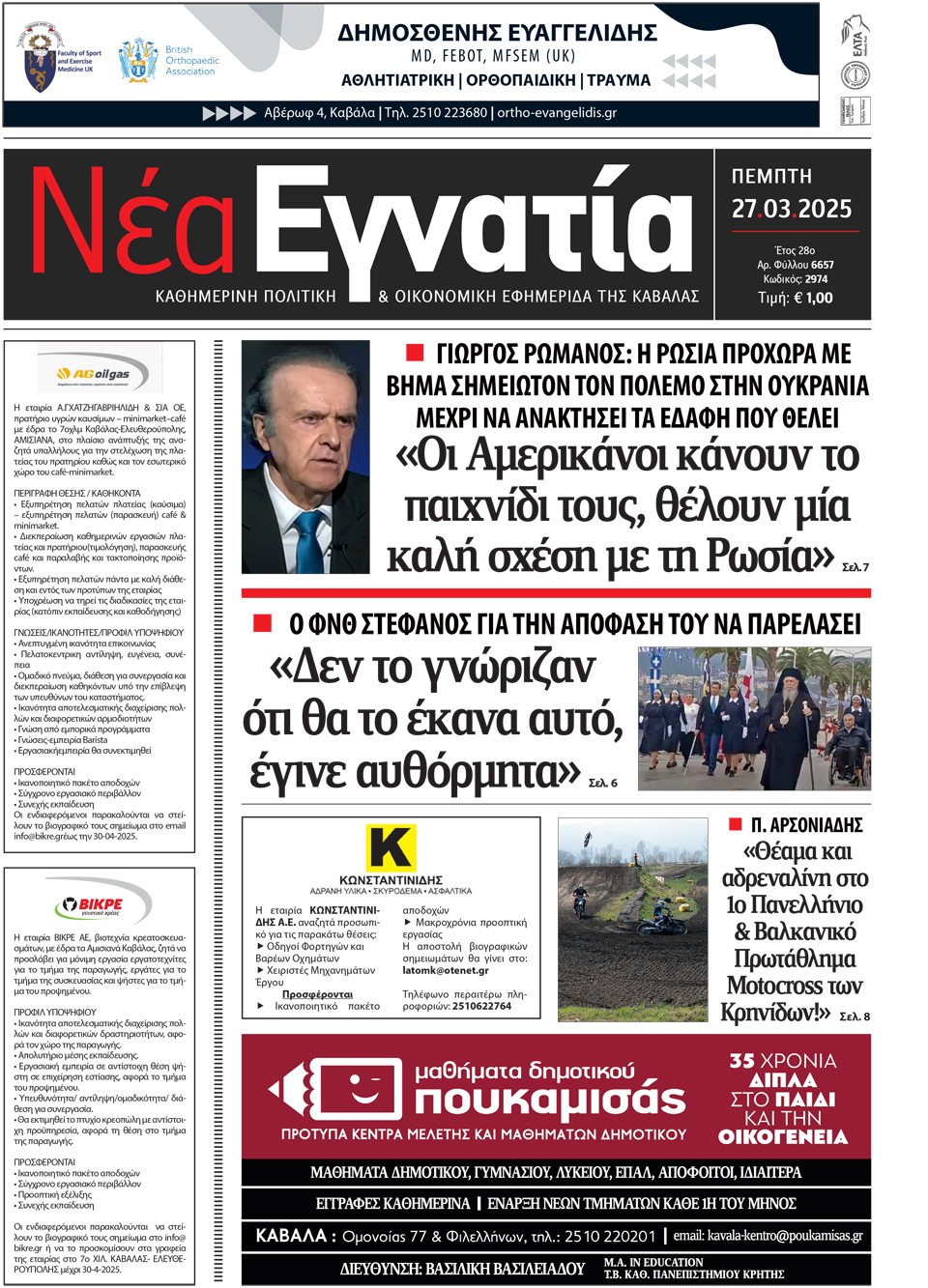 ΝΕΑ ΕΓΝΑΤΙΑ - 27 Μαρτίου 2025