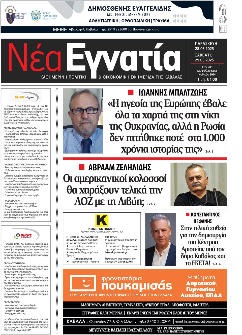 ΝΕΑ ΕΓΝΑΤΙΑ - 28 Μαρτίου 2025