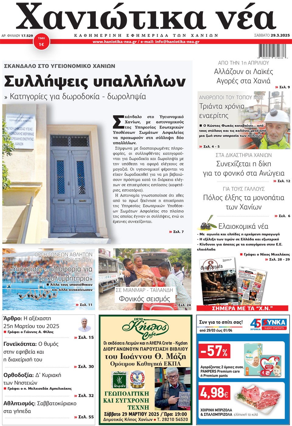 ΧΑΝΙΩΤΙΚΑ ΝΕΑ - 29 Μαρτίου 2025