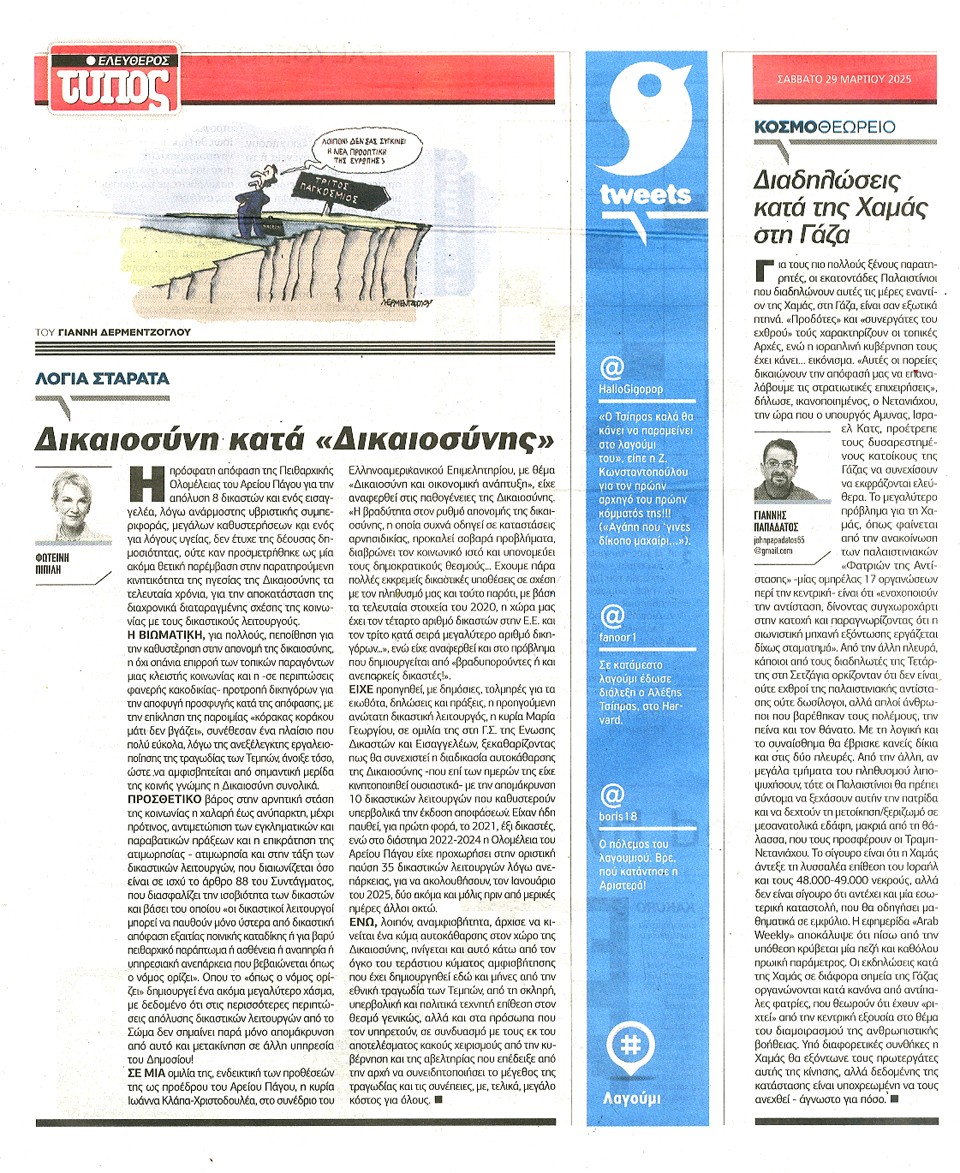 ΕΛΕΥΘΕΡΟΣ ΤΥΠΟΣ - 29 Μαρτίου 2025