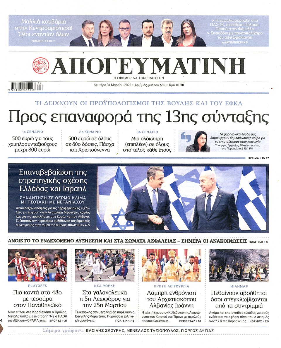ΑΠΟΓΕΥΜΑΤΙΝΗ - 31 Μαρτίου 2025