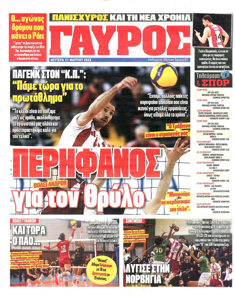 ΠΡΩΤΑΘΛΗΤΗΣ - 31 Μαρτίου 2025