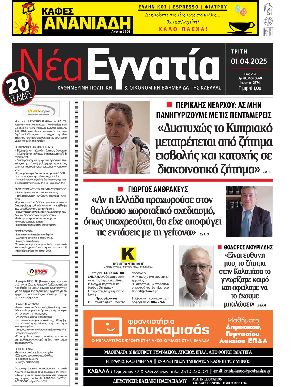 ΝΕΑ ΕΓΝΑΤΙΑ - 01 Απριλίου 2025