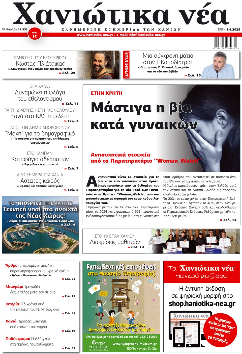 ΧΑΝΙΩΤΙΚΑ ΝΕΑ - 01 Απριλίου 2025