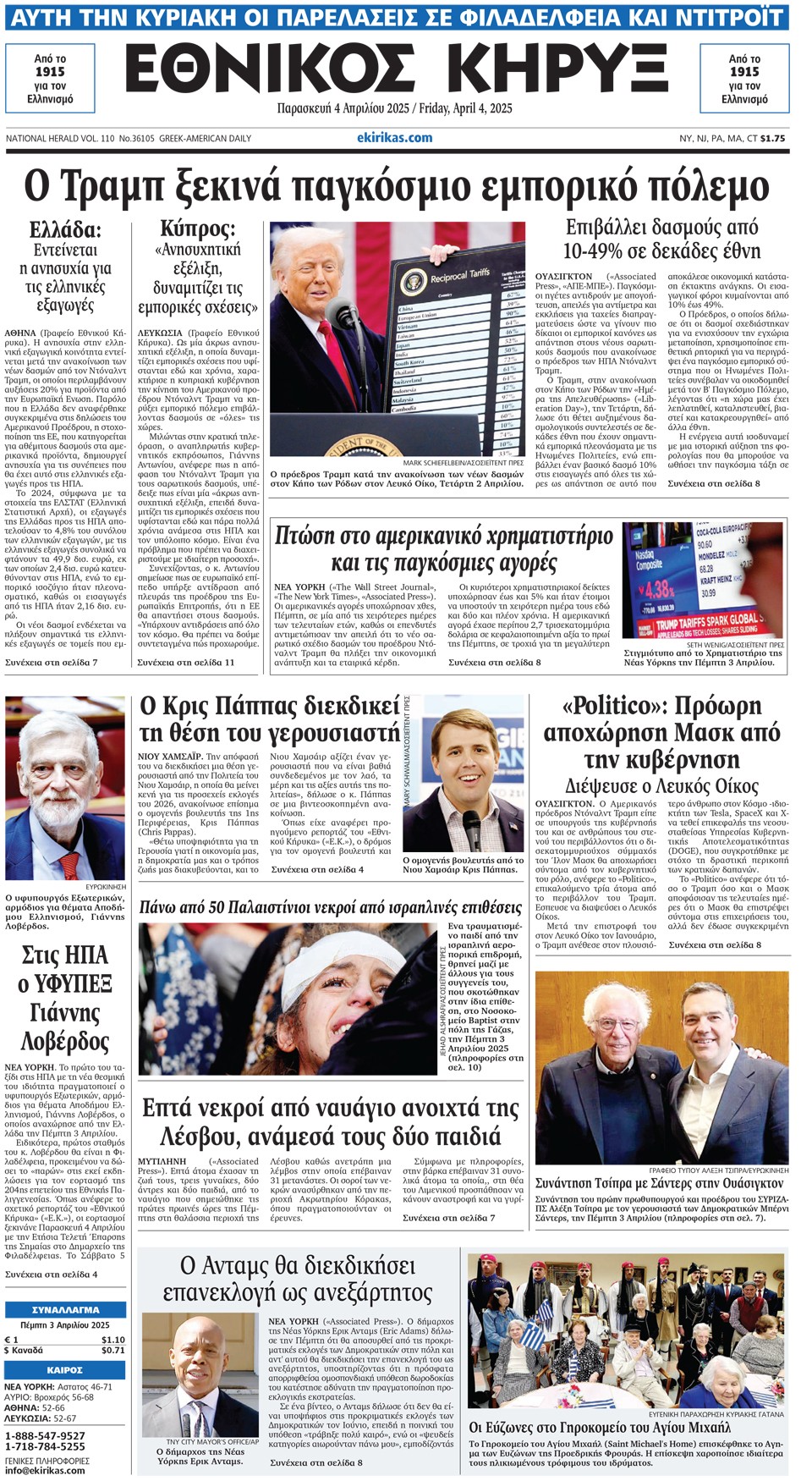 ΕΘΝΙΚΟΣ ΚΗΡΥΞ - 04 Απριλίου 2025