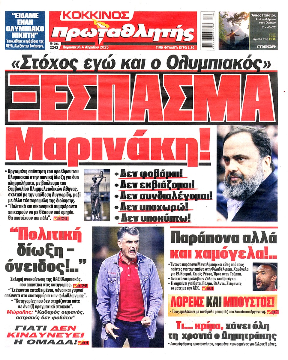ΠΡΩΤΑΘΛΗΤΗΣ - 04 Απριλίου 2025