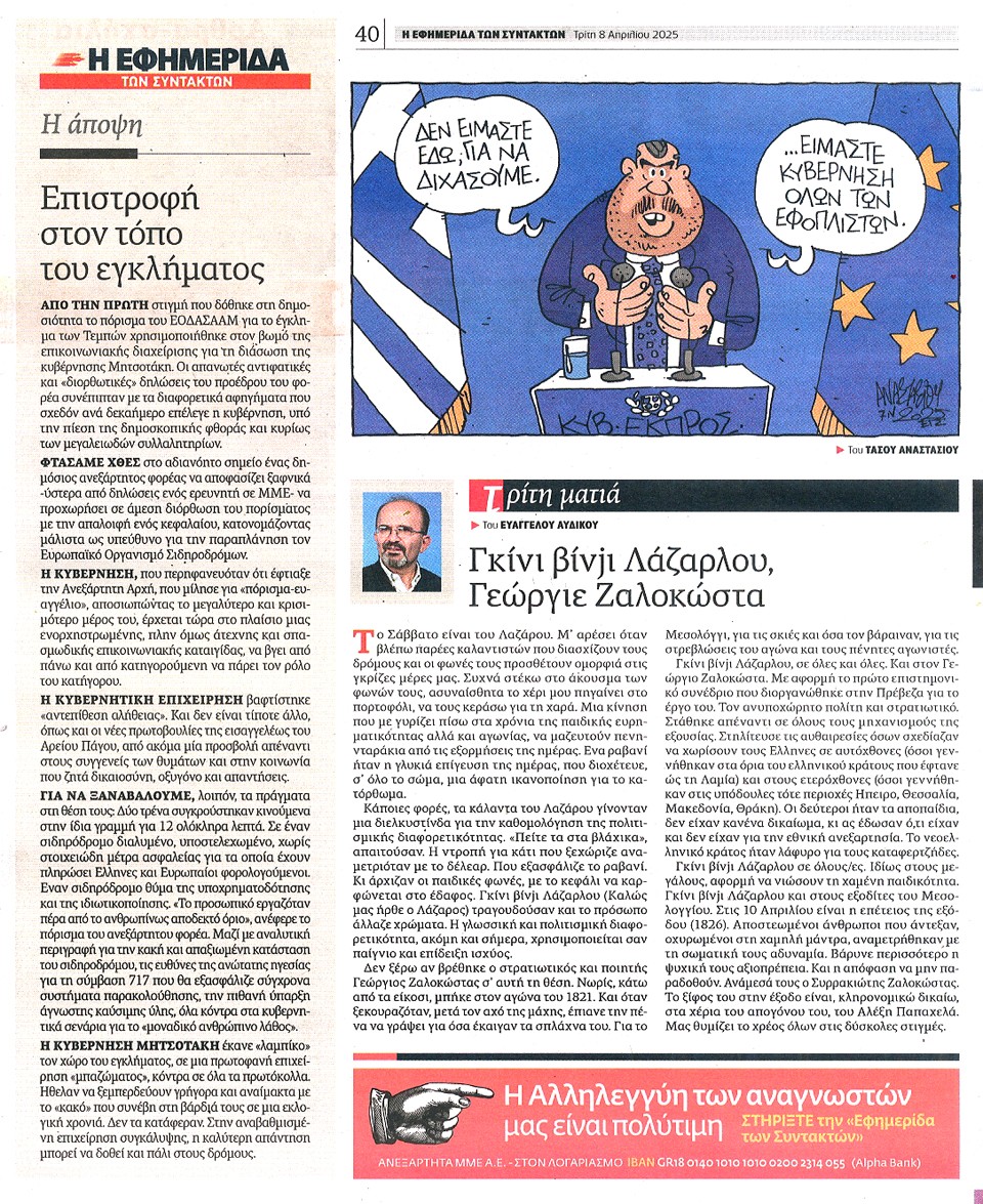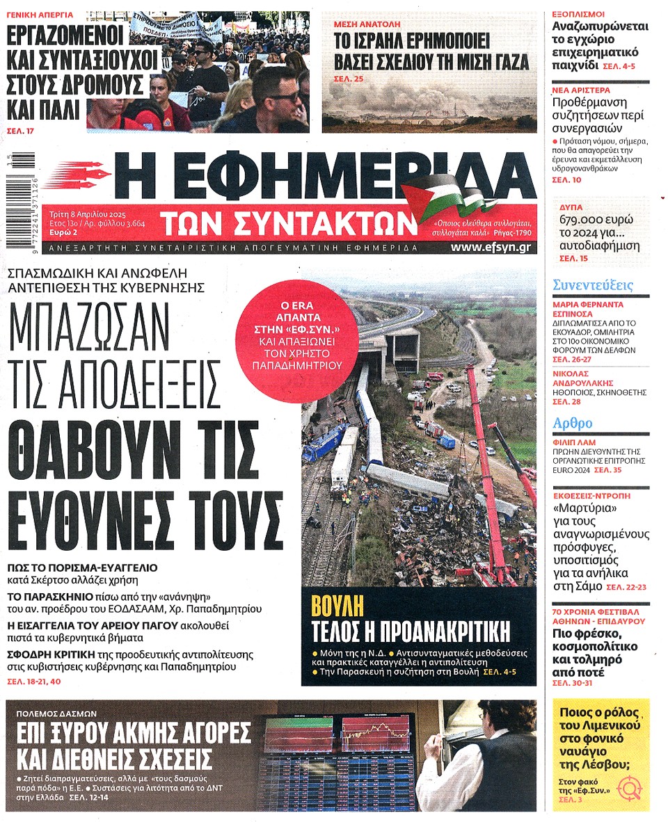 Η ΕΦΗΜΕΡΙΔΑ ΤΩΝ ΣΥΝΤΑΚΤΩΝ - 08 Απριλίου 2025