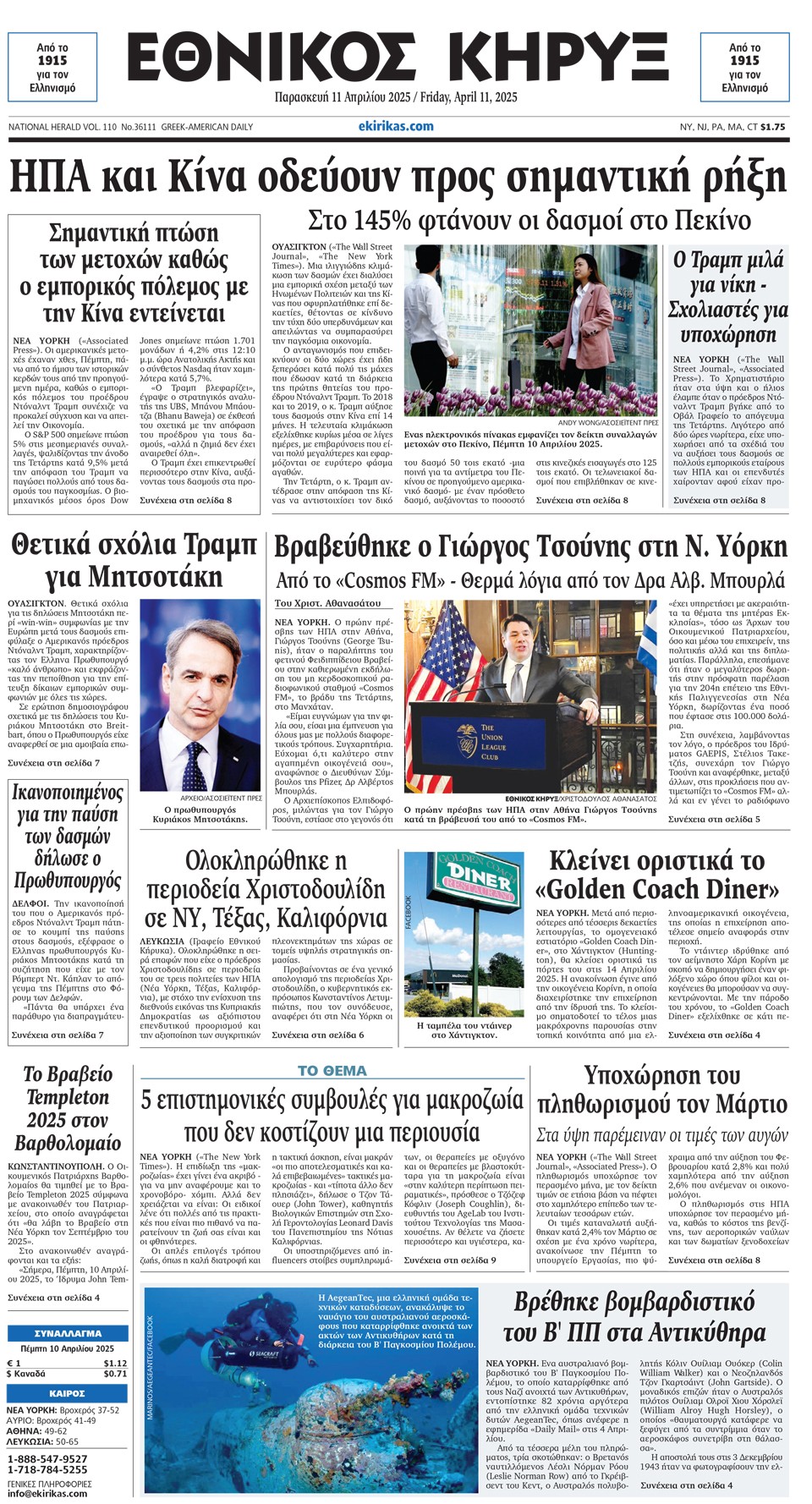 ΕΘΝΙΚΟΣ ΚΗΡΥΞ - 11 Απριλίου 2025