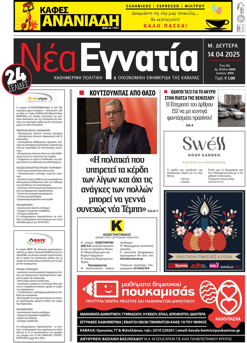 ΝΕΑ ΕΓΝΑΤΙΑ - 14 Απριλίου 2025
